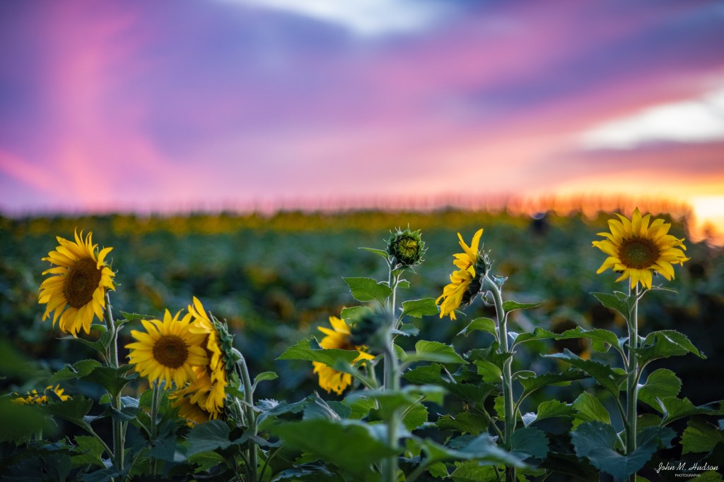 The sun sets Saturday, Sept. 19, 2020, on Beaver Dam Farm’s sunflowers in Botetourt County, Va., near Buchanan. Nikon D750, 85mm f/1.8 lens, 1/90th second, f/1.8, ISO 800. ©2020 John M. Hudson