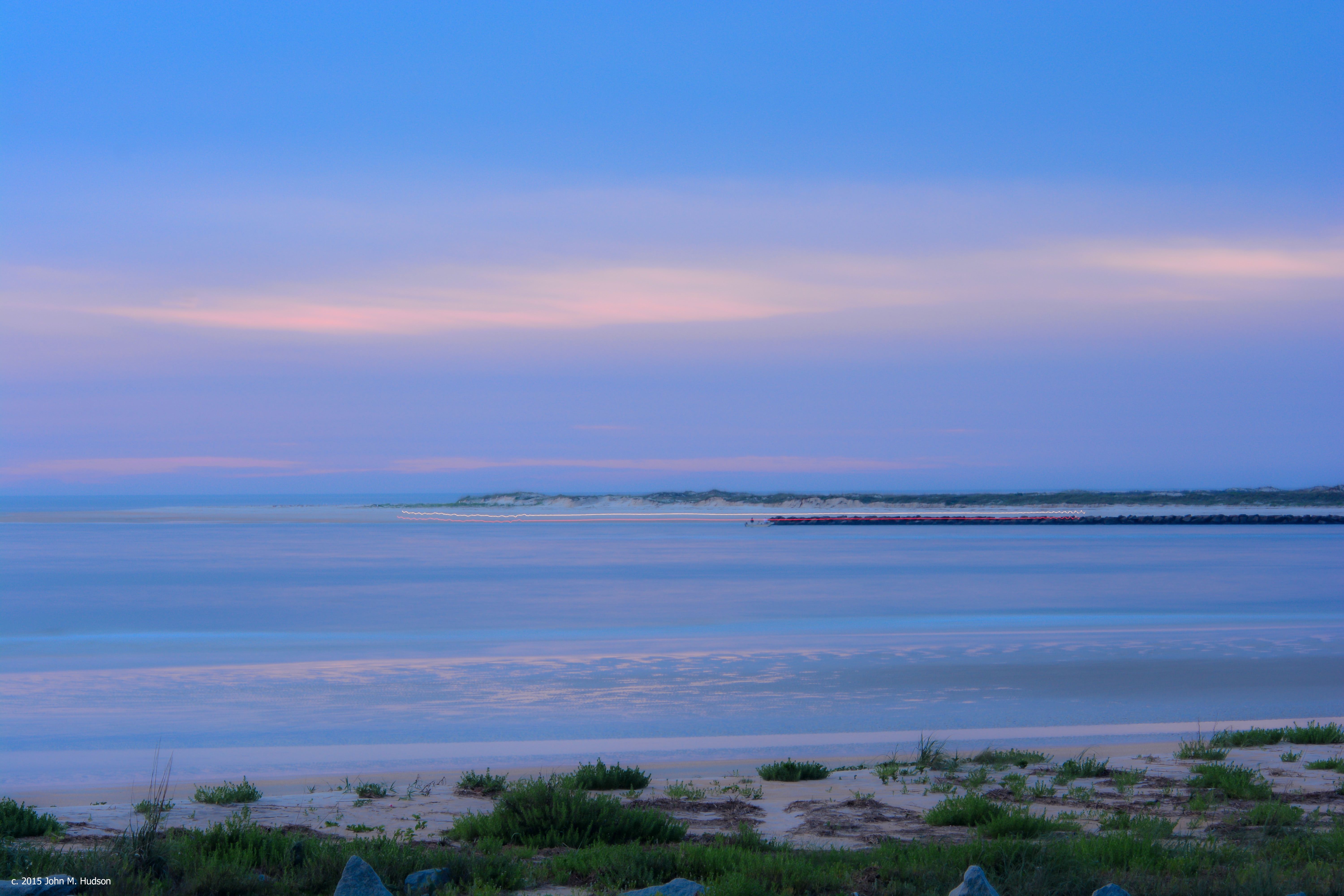 Fishing charters leave light trails as they leave St. Augustine Inlet in Florida on the way out to the Gulf Stream before dawn April 23, 2015. Nikon D7100. Sigma 70-300mm. 70mm. 105mm DX. ISO 100. f/11. 12 secs. -1EV. Click to enlarge.