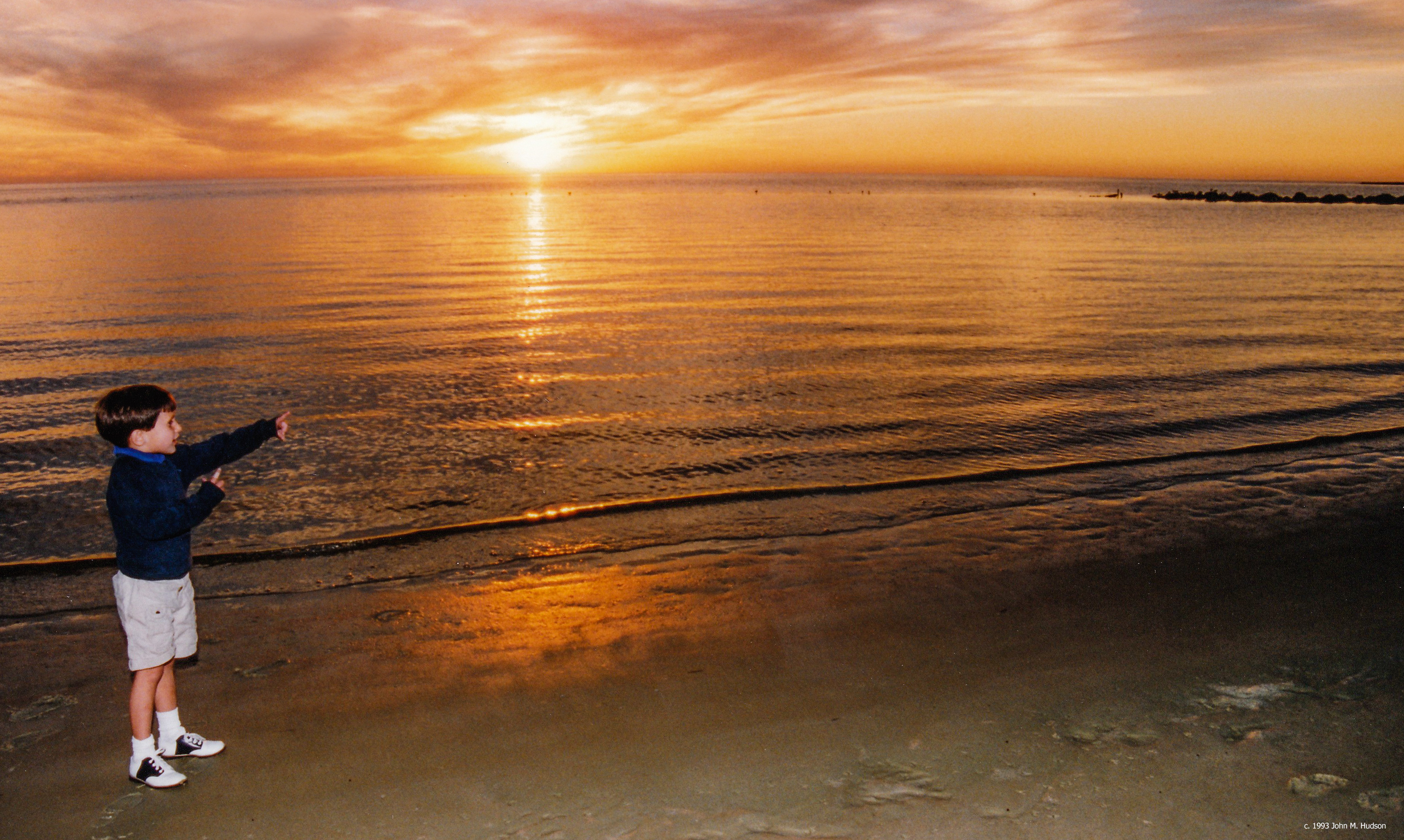 My son, Jack, then 3, enjoys the sunset over the Gulf of Mexico near Crystal River, Fla. Picture taken Nov. 22, 1993. Nikon N8008. Nikkor 24-50mm. 24mm. ISO 400. Nikon SB24 speedlight to fill. Click to enlarge