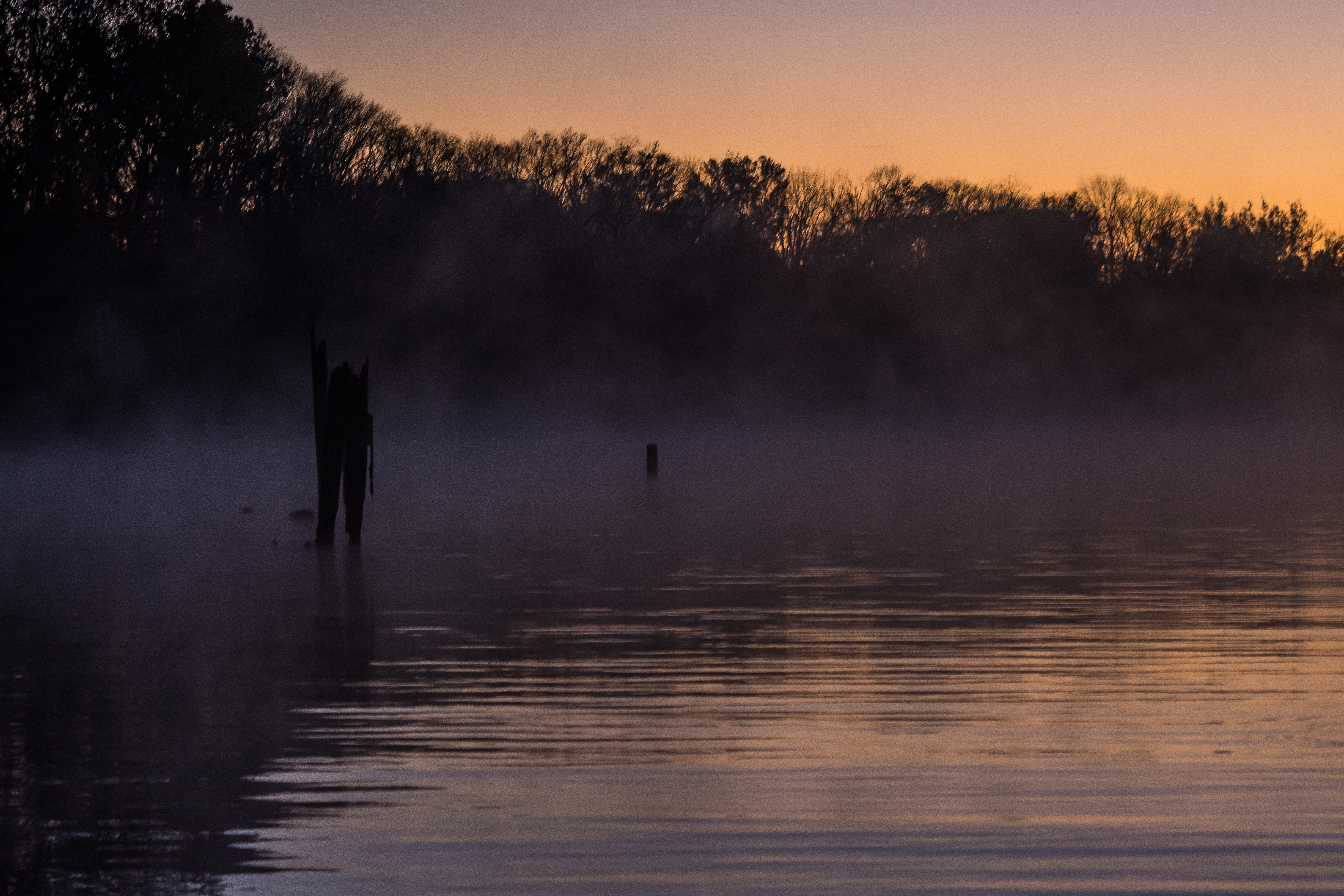 Sunrise on the James River at Deep Bottom boat ramp south of Richmond, Va. Nikon D5200. Sigma 70-300mm f/4-5.6. RAW. f/5.6. 1/30th sec. ISO 1600. 70mm (DX 105mm). Click on image to enlarge.