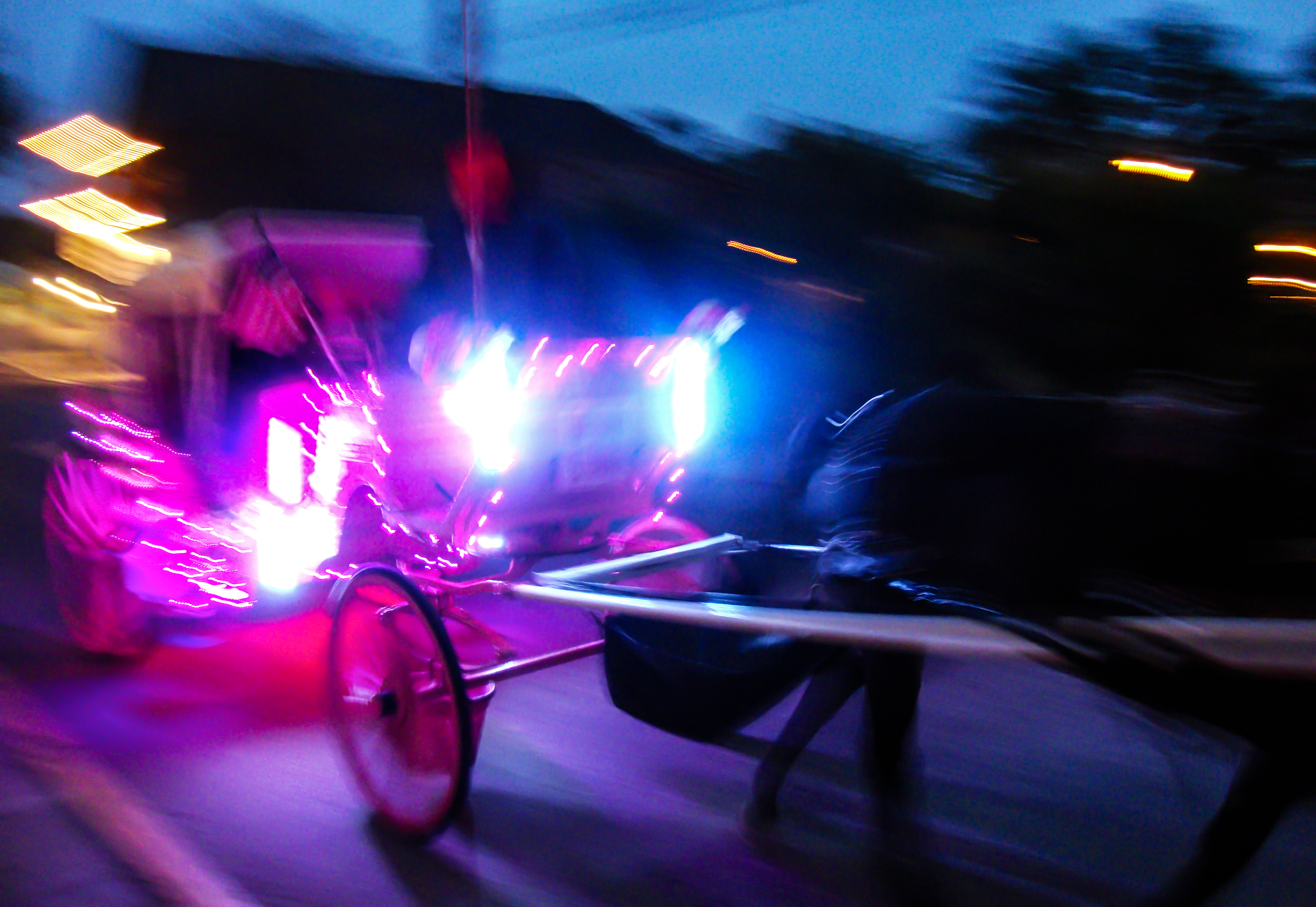 A tourist carriage flies down Cordova Street in Old Town St. Augustine, Fla. Picture taken Nov. 19, 2012. JPEG. Sony DSC-W220. 5.4 mm. 1/4 sec. f/2.8. ISO 400. Click on imager to enlarge.