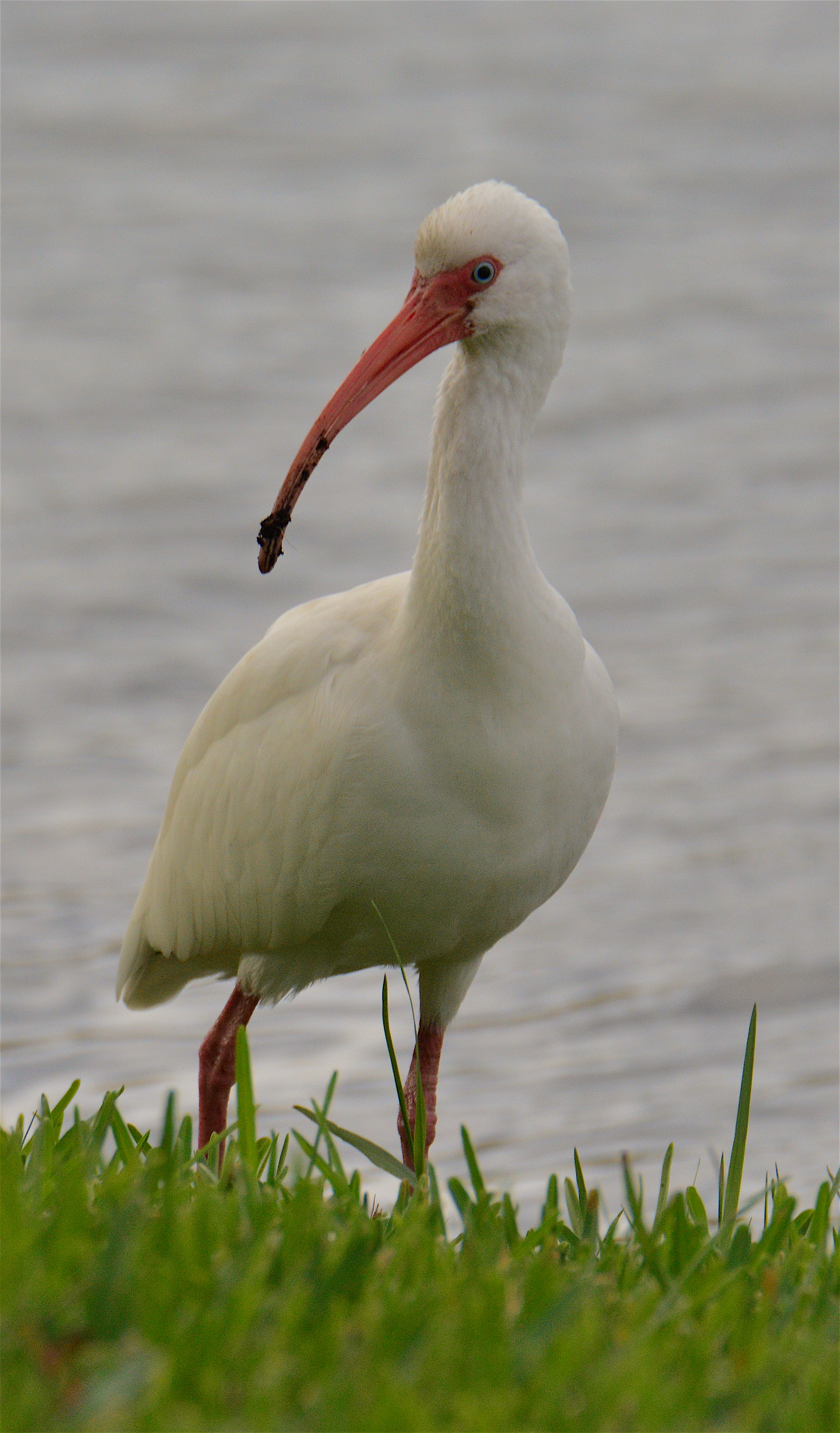 This American white ibis was scrounging for food by a pond in Atlantic Beach, Fla. Picture taken Tuesday, Jan. 5, 2016. JPEG. Nikon D-7100. Tamron 150-600mm f/5.6-6.3. ISO 800. f/10. 1/1000 sec. 600mm (DX 900mm). Click on image to enlarge.