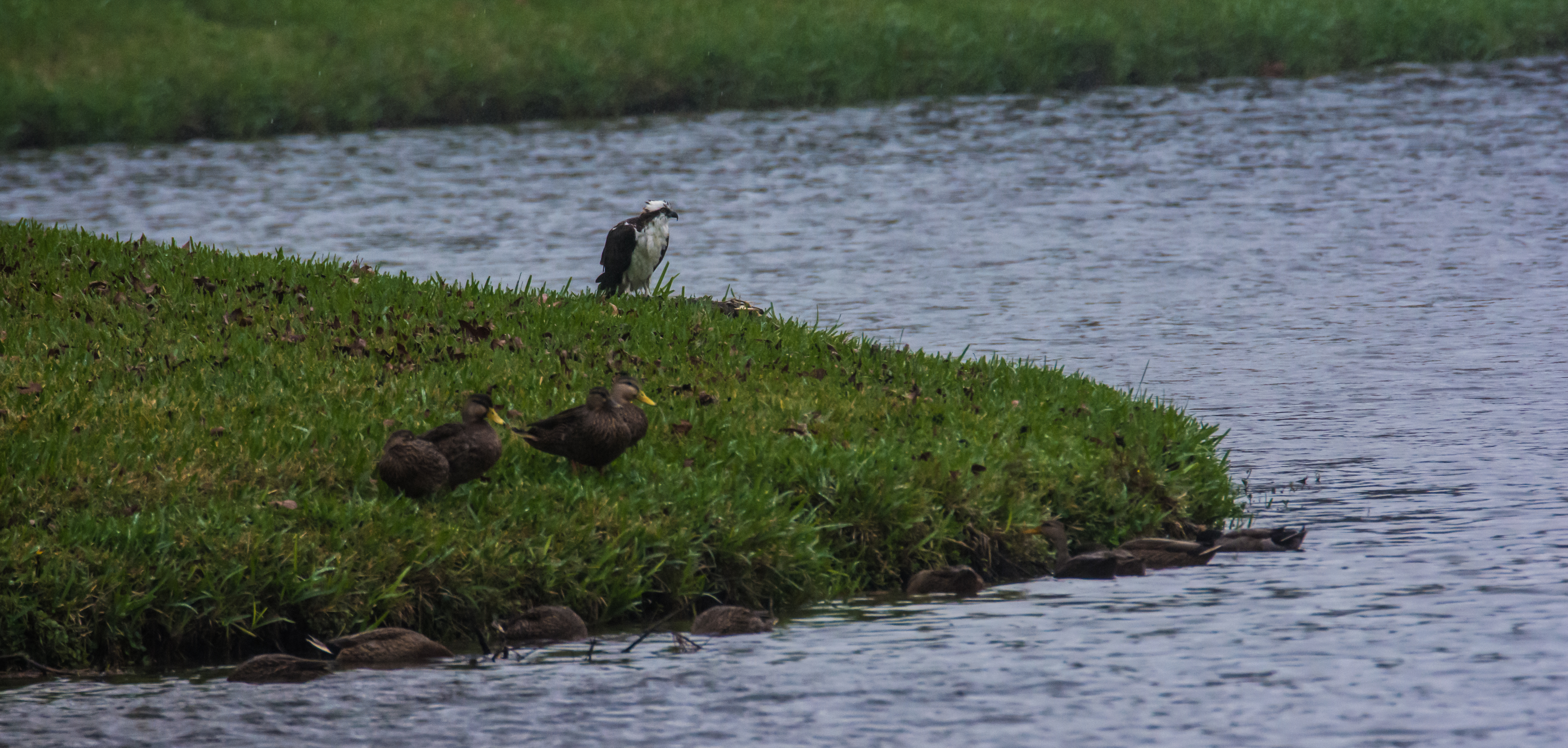 An osprey perches among the ducks by an Atlantic Beach, Fla., lake. Photo taken Jan. 6, 2015. Nikon D7100. RAW. Tamron 150.0-600.0 mm f/5.0-6.3. ISO 1600. 1/640th sec. 600mm (DX 900mm). Click on image to enlarge.