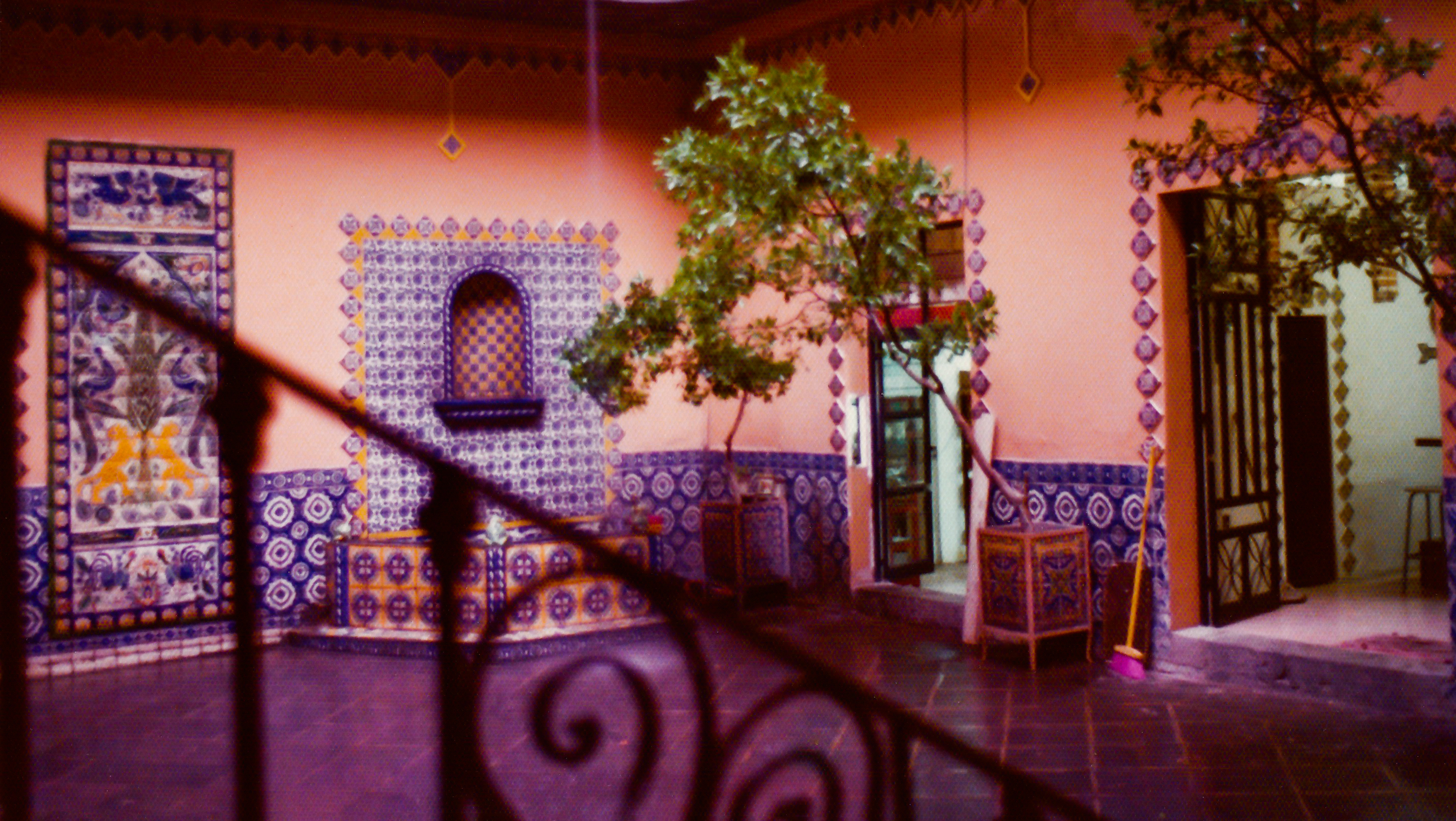 Memories of Mexico II. After a rain, water falls from the roof and into the inner courtyard of the centuries-old Talavera tile factory in innercity Puebla, Pue., Mexico. Puebla is — or at least it used to be — the most Spanish of Mexican cities. This is a wonderful example. It was serene in the courtyard, more like a monastic cloister. Picture taken June 1, 1972. Petri F1.9 rangefinder camera with 45mm f1.9 lens. Negatives long gone; scanned from textured paper (popular in the ’70s; ugh). No other data available. Click on image to enlarge.
