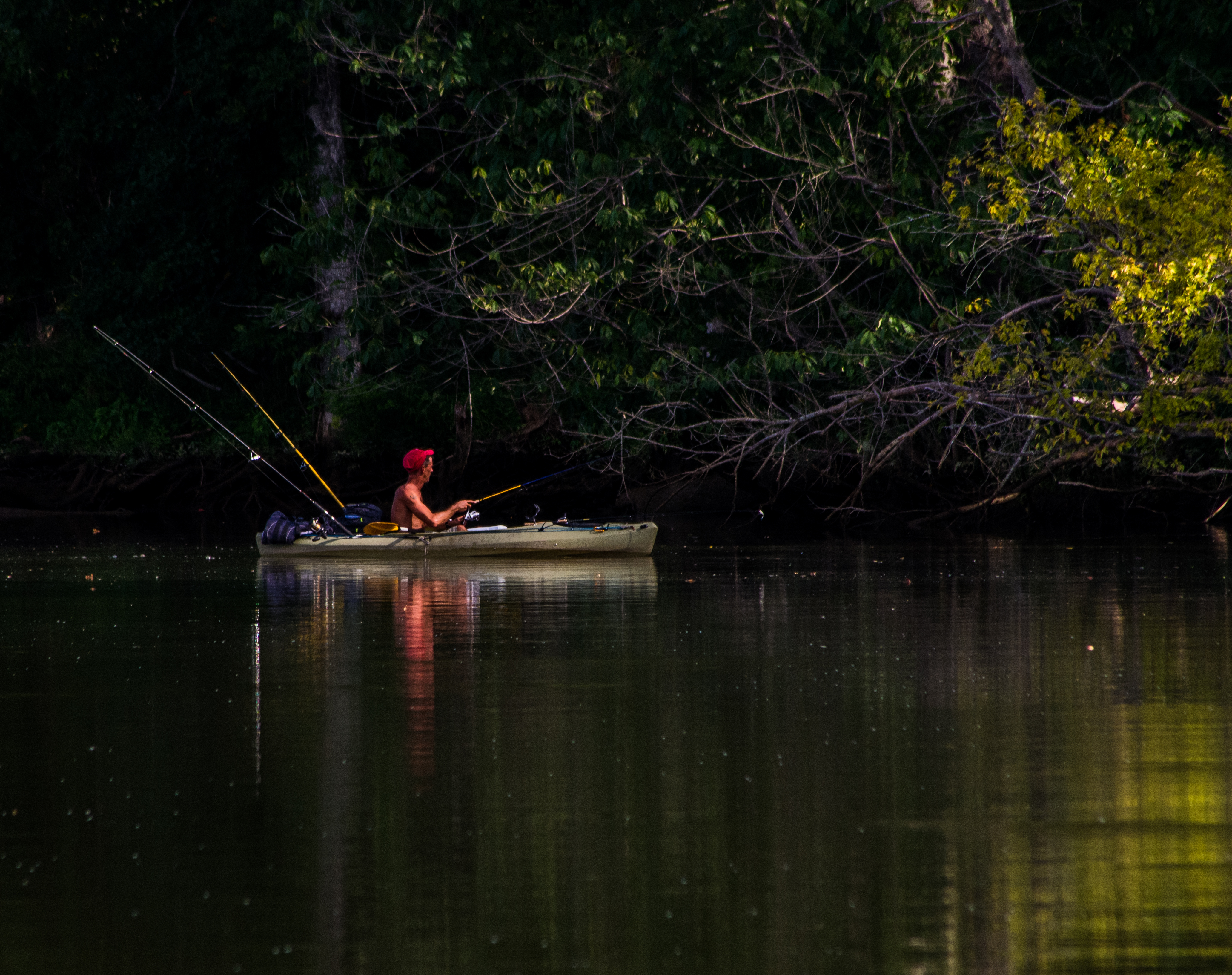 Early morning fishing on the James River near Richmond, Va. Picture taken Aug. 2, 2015, during an “eagle cruise” with a half-dozen other very eager bird photographers. Nikon D5200. Sigma 70.0-300.0 mm f/4.0-5.6. JPEG. 1/500 sec; f/9; ISO 800. 300mm (DX 450m). Click on image to enlarge.