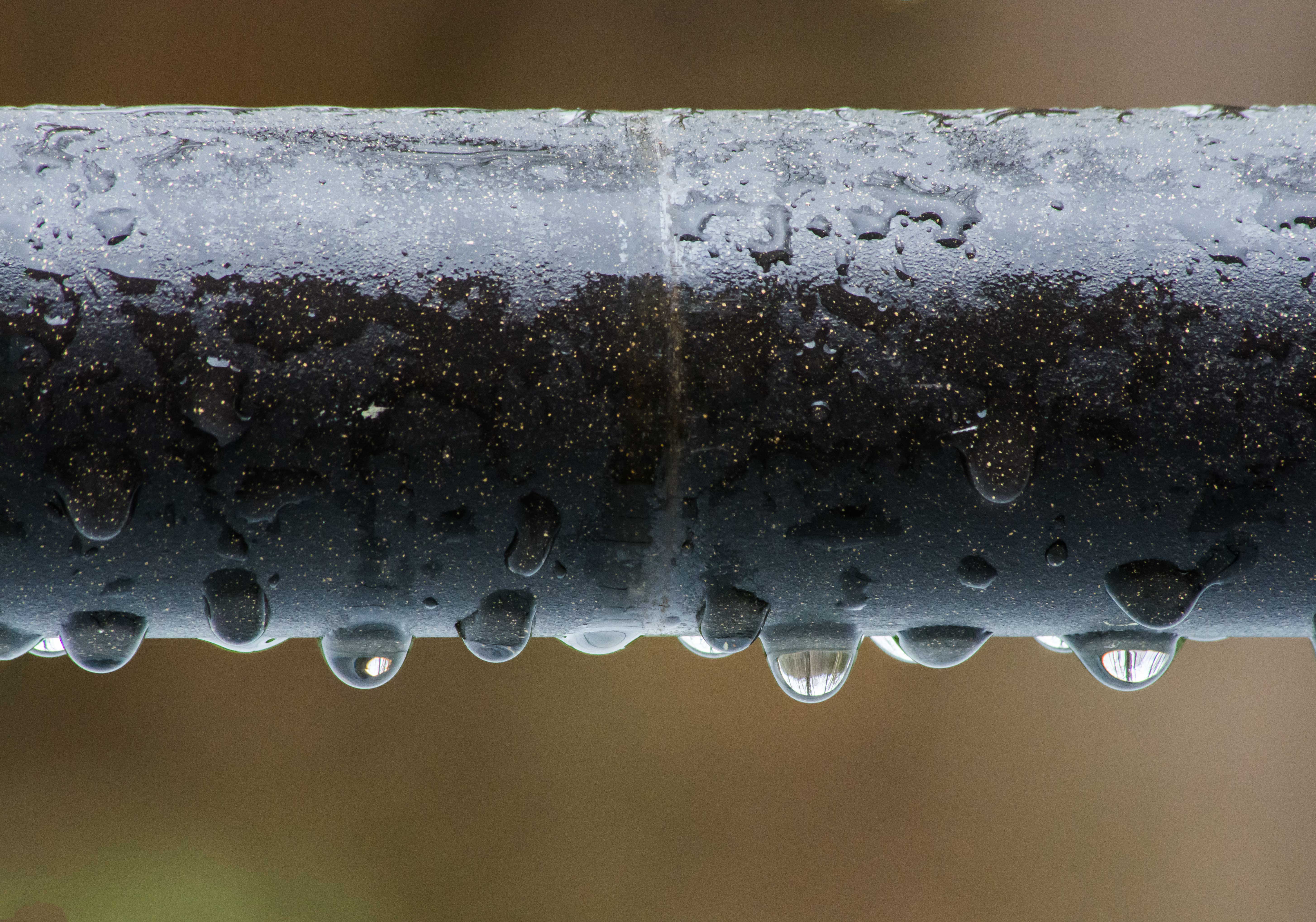 A rainy day: Droplets collect on a deck umbrella pole. Image taken Match 19, 2016. D7100. RAW. 70.0-300.0 mm f/4.0-5.6. 1/160 sec. f/16. ISO 1600. DX 450mm. Click on image to enlarge.